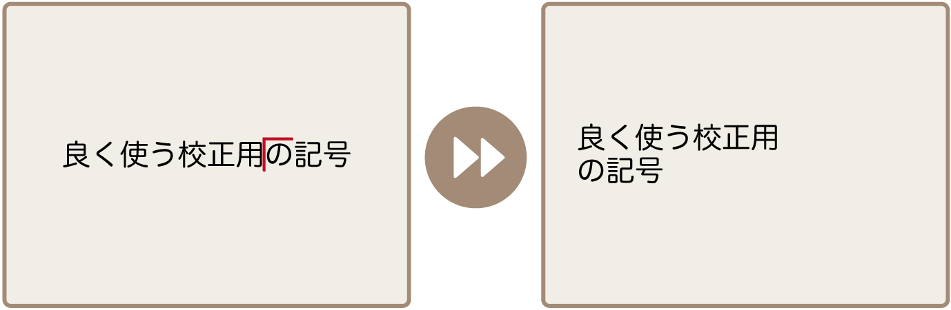 改行とともに段落そのものを新しくするのは「段落改行」といい、「┌」の下に横線を追加した、Zが逆向きで直線になったような記号を入れます。この場合、文章の先頭の文字は、一字下げなど段落の先頭のスタイルを受け継ぎます。