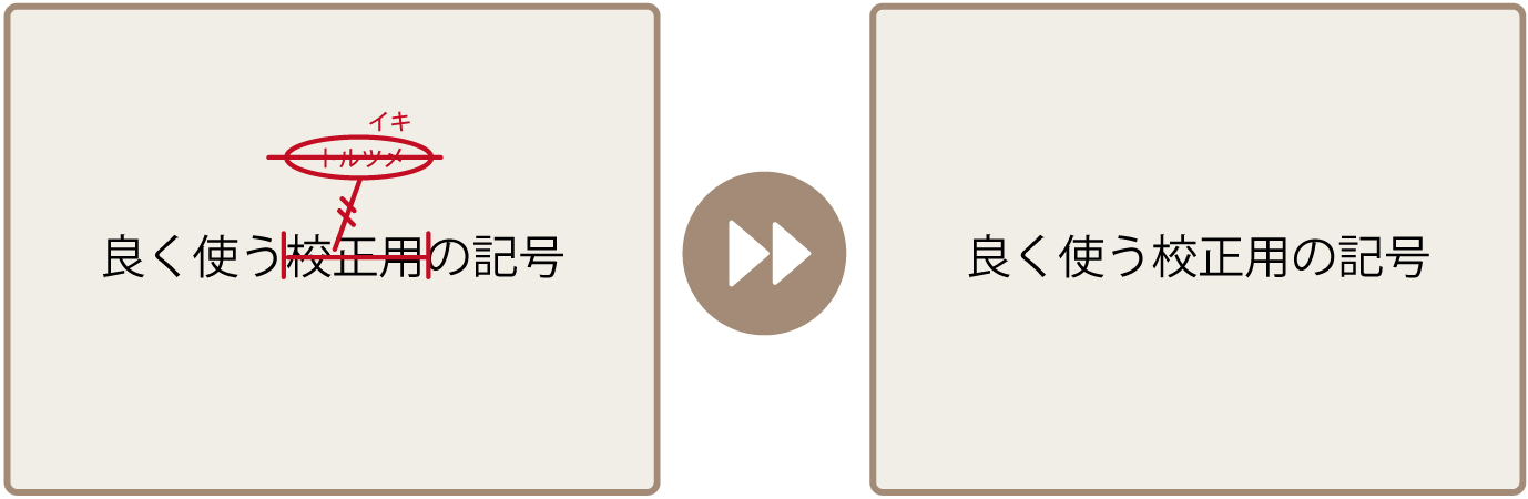 ここからは、一般的によく使われている代表的な校正の記号と、書き方、使い方の例をみていきましょう。